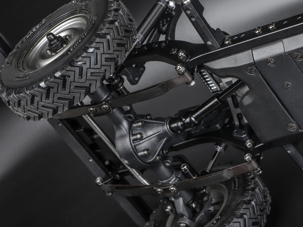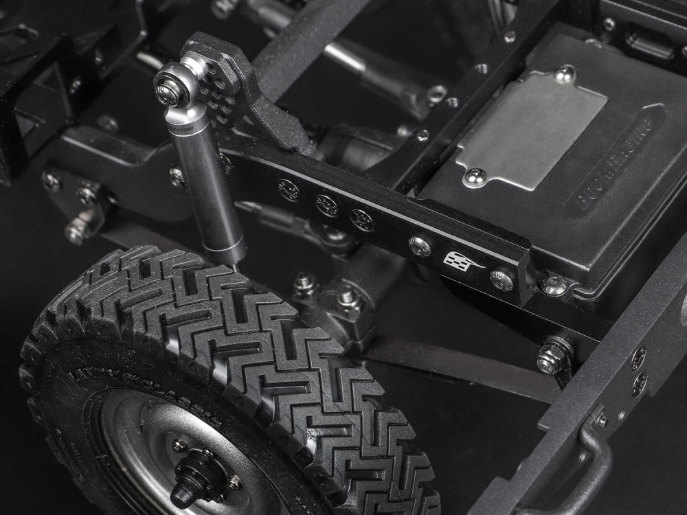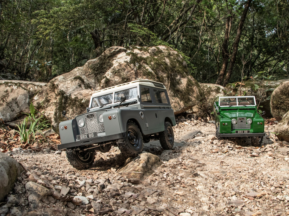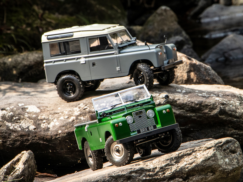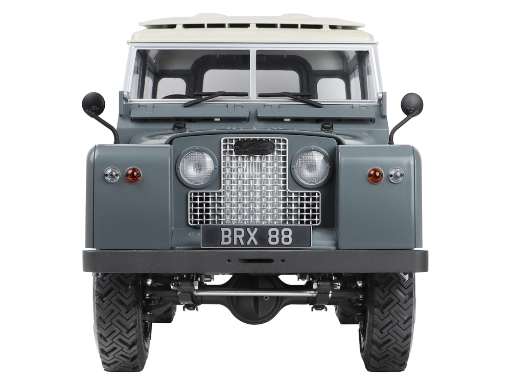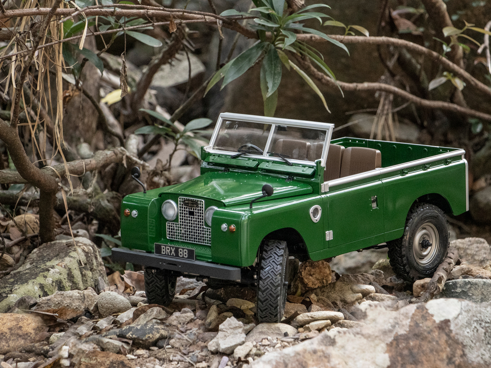 PRODUCT INFORMATION: This is the officially licensed Boom Racing BRX02 Land Rover® Series II 88 Station Wagon 1/10 4WD radio control car kit. Commonly referred to as Series Land Rovers, it is arguably one of the world’s most iconic vehicles ever made. Produced from 1958 to 1971, the Land Rover Series II is unshowy, unpretentious, and classless; it is the car that you can arrive with at the Buckingham Palace, a rural farm, or an inner-city estate. The Series Land Rover survived decades largely unchanged, serving farmers and foresters, construction and utility companies, explorers and scientists, armies and airforces – in fact, everyone who needed a good, honest vehicle that would do a good, honest job anywhere in the world. It was a beacon of safety and security too. It was favored by the military, the police, the fire service, NGOs, the UN, the Royal Palace, the Special Forces, and explorers alike. This iconic workhorse discovered new regions, won wars, and saved lives. Regress to a simpler, classier time, and experience the ageless charm of this iconic vehicle. We’ve carefully studied the vehicle extensively and spent over a year designing and producing this scaled-down model kit. After years of waiting for such a model, the Boom Racing Land Rover Series II 88 radio control car kit has finally arrived. What is the BRX02 88? This all-new BRX02 88 is a new class of performance-oriented scale trail truck. It is a short-wheelbase version of the BRX02 109. It shares many similar drivetrain components with the proven BRX01 and BRX02 platforms. It has the same leaf spring suspension setup as the BRX02 109. The BRX02 88, however, has its own identity, with many new parts explicitly designed to work in this smaller chassis. Multiple updates were made to the BRX02 88 to fit the shorter 280mm wheelbase Series II 88 body. These updates include a direct heavy-duty steel driveshaft between the BCF2™ transmission and the B2X™ transfer case for improved drivetrain efficiency and a battery tray ready to be integrated with a full-size servo winch. Front suspension travel has been improved with an updated aluminum chassis rail. Even though it is much smaller than the BRX02 109, don't expect anything less from us. The chassis layout of this BRX02 88 is well thought through from the ground up. We've designed this short-wheelbase chassis to include all of the most desired trail truck features, fitting a two-speed transmission, optional overdrive (by swapping t-case gears), 2WD/4WD transfer case, or dig transfer case, an optional full-size internal servo winch with routing cable, an optional LED light kit, an optional rock light set, all with a full interior installed. The BRX02 88 includes the narrow BRX80 Scale PHAT™ axles to give the truck the correct scale appearance. It has the B2X™ anti-torque twist aluminum transfer case that is identical to the original BRX02 transfer case but has the additional feature of being overdrive ready. A pair of 6mm aluminum frame rails for superior strength, chassis rigidity and predictable handling. A stainless steel ESC mounting plate next to the front motor replaces the carbon fiber at the rear end of the chassis of the BRX02. To re-create the original Series II appearance, the body sits slightly lower with 80mm KUDU™ scale shock dampers, and the front and rear bumpers were changed to the Series II design. The front bumper includes space for a fairlead, and the rear bumper includes left and right-side crossmember grab handles. The front and rear skid plate sliders are designed with maximum ground clearance in mind and molded in nylon for added strength and to keep the CG lower. One of the main challenges in designing this scaled-down Series II was to keep the wheels tucked inside the body at all times while having good steering ability with a full leaf spring setup. This was achieved by using the BRX80 Scale PHAT™ axles, plus an all-new XT502PIN pin wheel hub that is narrower than the XT500 pin hub. The other challenge was to figure out a way to relocate the steering servo. Series IIs had quite a significant recessed grill which interfered with the way the BRX02 Leaf chassis is set up. We designed a new servo mount and moved the servo under the motor, and by flipping the BCF2™ transmission motor mount upside down we created enough space for the servo and added a good amount of suspension travel. The chassis is fitted with our new SLR™ 1.9” steelie beadlock wheels that come with scale wheel caps with a tool included for easy installation, as well as new scale screws that were specifically designed for these wheels, with a tool included. The wheels are paired with a set of Landy Classic™ 1.9” scale tires in Gekko™ Black (super soft) compound. This soft and tacky rubber is our proprietary compound which is used in many of our tires and is formulated for crawler performance and durability in rough terrains. The original BRX02 concept The BRX02 is our top-of-the-line scale performance off-road chassis. It is the result of continuous development and improvement of the highly-rated BRX01, developed in close collaboration with many scale hobbyists around the world. You can expect to build an ultra-realistic R/C model vehicle that gives you great performance straight out of the box. It shares the same drivetrain with the BRX01 – a top-quality robust driving system that has made a name for itself in the industry for being durable and efficient. At its core is the small footprint BCF2™ transmission with 2-speed, hi-lo remote shifting ability. The transfer case sits on a high-clearance skid plate that lifts the belly up for fewer overhangs. The BADASS™ heavy-duty front and rear steel axle shafts and KUDU™ center CVD driveshafts are durable, smooth, and capable of high articulation angles. KUDU™ driveshafts are rebuildable and have become the standard for all future Boom Racing vehicles. The BRX80 Scale PHAT™ axles use our proprietary AR44 h