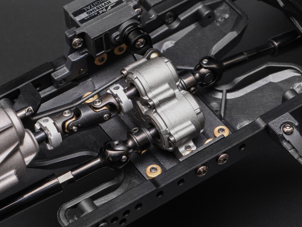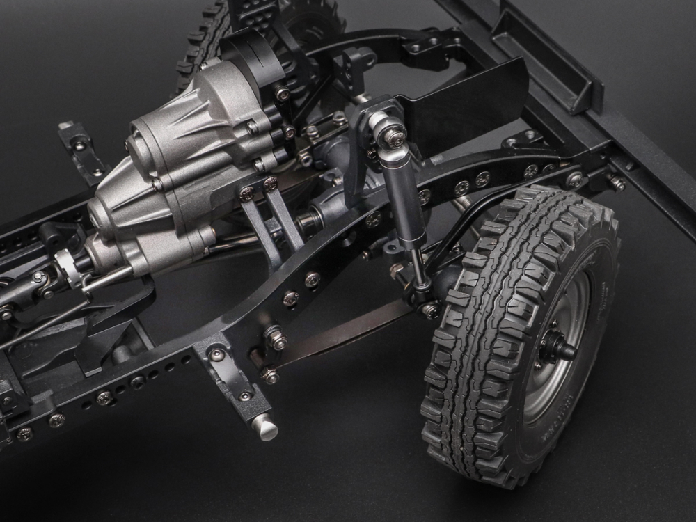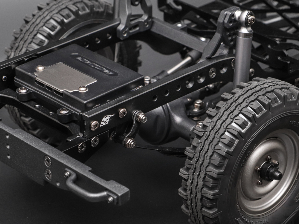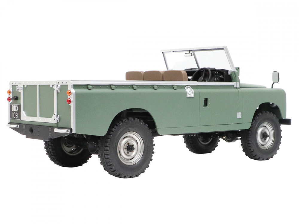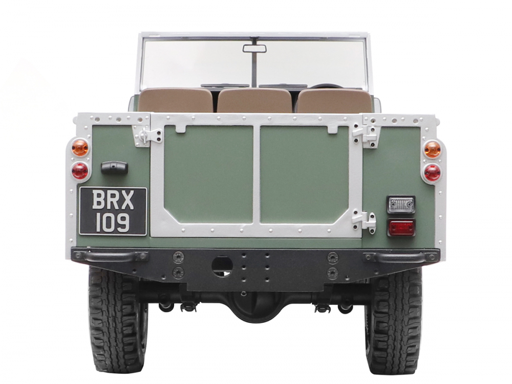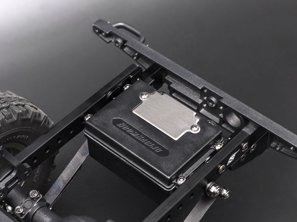 PRODUCT INFORMATION: Watch a video introduction about this product This is the officially licensed Boom Racing BRX02™ Land Rover® Series III 109 Pickup 1/10 4WD radio control car kit. Commonly referred to as Series Land Rovers, it is arguably one of the world’s most iconic vehicles ever made. Produced from 1971 to 1985, the Land Rover Series III is unshowy, unpretentious, and classless; it is the car that you can arrive with at the Buckingham Palace, a rural farm, or an inner-city estate. The Series Land Rover survived decades largely unchanged, serving farmers and foresters, construction and utility companies, explorers and scientists, armies and airforces – in fact, everyone who needed a good, honest vehicle that would do a good, honest job anywhere in the world. It was a beacon of safety and security too. It was favored by the military, the police, the fire service, NGOs, the UN, the Royal Palace, the Special Forces, and explorers alike. This iconic workhorse discovered new regions, won wars, and saved lives. Regress to a simpler, classier time, and experience the ageless charm of this iconic vehicle. We’ve carefully studied the vehicle extensively and spent over a year designing and producing this scaled-down model kit. After years of waiting for such a model, the Boom Racing Land Rover Series III 109 radio control car kit has finally arrived. What is the BRX02 109? The Boom Racing Land Rover Series III project began with the BRX02 Leaf chassis as a starting platform with a 334mm wheelbase. We’ve made multiple changes to retrofit this new classic body. These changes include using the slightly narrower BRX80 Scale PHAT™ axles, a new B2X™ anti-torque twist aluminum transfer case that is identical to the original BRX02 transfer case but has the additional feature of being overdrive ready. New 6mm aluminum frame rails for superior strength, chassis rigidity and predictable handling. A new stainless steel ESC mounting plate next to the front motor replaces the carbon fiber ESC plate at the rear end of the BRX02 Leaf chassis. To re-create the original Series III appearance, the body sits slightly lower with 80mm KUDU™ scale shock dampers, and the front and rear bumpers were changed to the Series III design. The front bumper includes space for a fairlead, and the rear bumper includes left and right-side crossmember grab handles. The front and rear skid plate sliders are designed with maximum ground clearance in mind and molded in nylon for added strength and to keep the CG lower. One of the main challenges in designing this scaled-down Series III was to keep the wheels tucked inside the body at all times while having good steering ability with a full leaf spring setup. This was achieved by using the BRX80 Scale PHAT™ axles, plus an all-new XT502-Pin pin wheel hub that is narrower than the XT500 pin hub. The other challenge was to figure out a way to relocate the steering servo. Series IIIs had quite a significant recessed grill which interfered with the way the BRX02 Leaf chassis is set up. We designed a new servo mount and moved the servo under the motor, and by flipping the BCF2™ transmission motor mount upside down we created enough space for the servo and added a good amount of suspension travel. The chassis is fitted with our new SLR™ 1.9” steelie beadlock wheels that come with scale wheel caps with a tool included for easy installation, as well as new scale screws that were specifically designed for these wheels, with a tool included. The wheels are paired with a set of Mileage Classic™ 1.9” scale tires in Gekko™ Black (super soft) compound. This soft and tacky rubber is our proprietary compound which is used in many of our tires and is formulated for crawler performance and durability in rough terrains. With all the above updates, we’ve given the chassis its own new identity – the BRX02 109. The original BRX02 concept The BRX02 is our top-of-the-line scale performance off-road chassis. It is the result of continuous development and improvement of the highly-rated BRX01, developed in close collaboration with many scale hobbyists around the world. You can expect to build an ultra-realistic R/C model vehicle that gives you great performance straight out of the box. It shares the same drivetrain with the BRX01 – a top-quality robust driving system that has made a name for itself in the industry for being durable and efficient. At its core is the small footprint BCF2™ transmission with 2-speed, hi-lo remote shifting ability. The transfer case sits on a high-clearance skid plate that lifts the belly up for fewer overhangs. The BADASS™ heavy-duty front and rear steel axle shafts and KUDU™ center CVD driveshafts are durable, smooth, and capable of high articulation angles. KUDU™ driveshafts are rebuildable and have become the standard for all future Boom Racing vehicles. The BRX80 Scale PHAT™ axles use our proprietary AR44 heavy-duty steel triangular keyed bevel helical cut 30/8T diff gears, with the same but reversed cut gears in the rear axle to cancel out almost all of the torque twist from the drivetrain. The leaf spring suspension with KUDU™ 80mm scale shocks gives a realistic ride height to the Series III. Optimized for scale performance, it features a billet aluminum cylinder body for durability, steel shock shaft with titanium nitride coating, plastic pivot retainers (replaceable) for smoother swivel movements, high degree pivot angle for high-angle articulation, double X-Ring oil seals, and comes with cylinder and friction seals to prevent leaks and contaminants from entering. The bump stop provides an additional level of bottoming control, stainless steel pivot balls for stainless, corrosion-resisting pivot rotation, and an aluminum pivot ball tool included for hassle-free maintenance. The leaf spring unit has a master leaf with three graduated leaves for suspension stability and adjustability. You may use up to four leaves for adjus